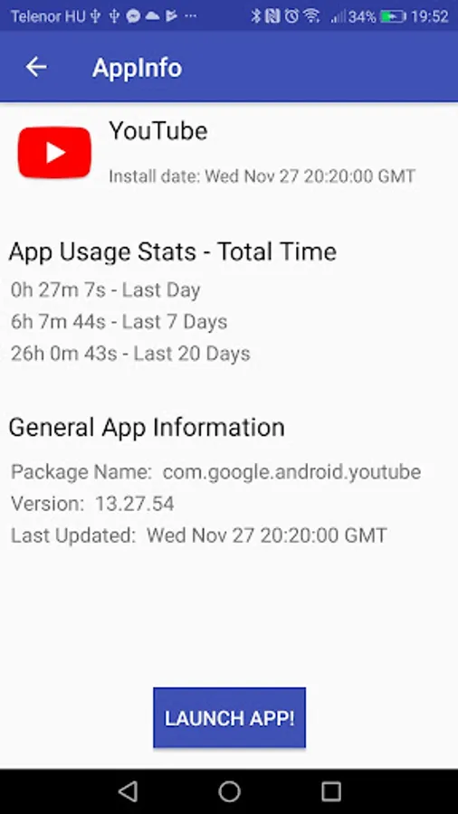 Nowadays effective time management became crucial. With this you can see the time spent (last 24 hours,7 days, 20 days) for each of your installed applications. This can help in taking better control of your time.