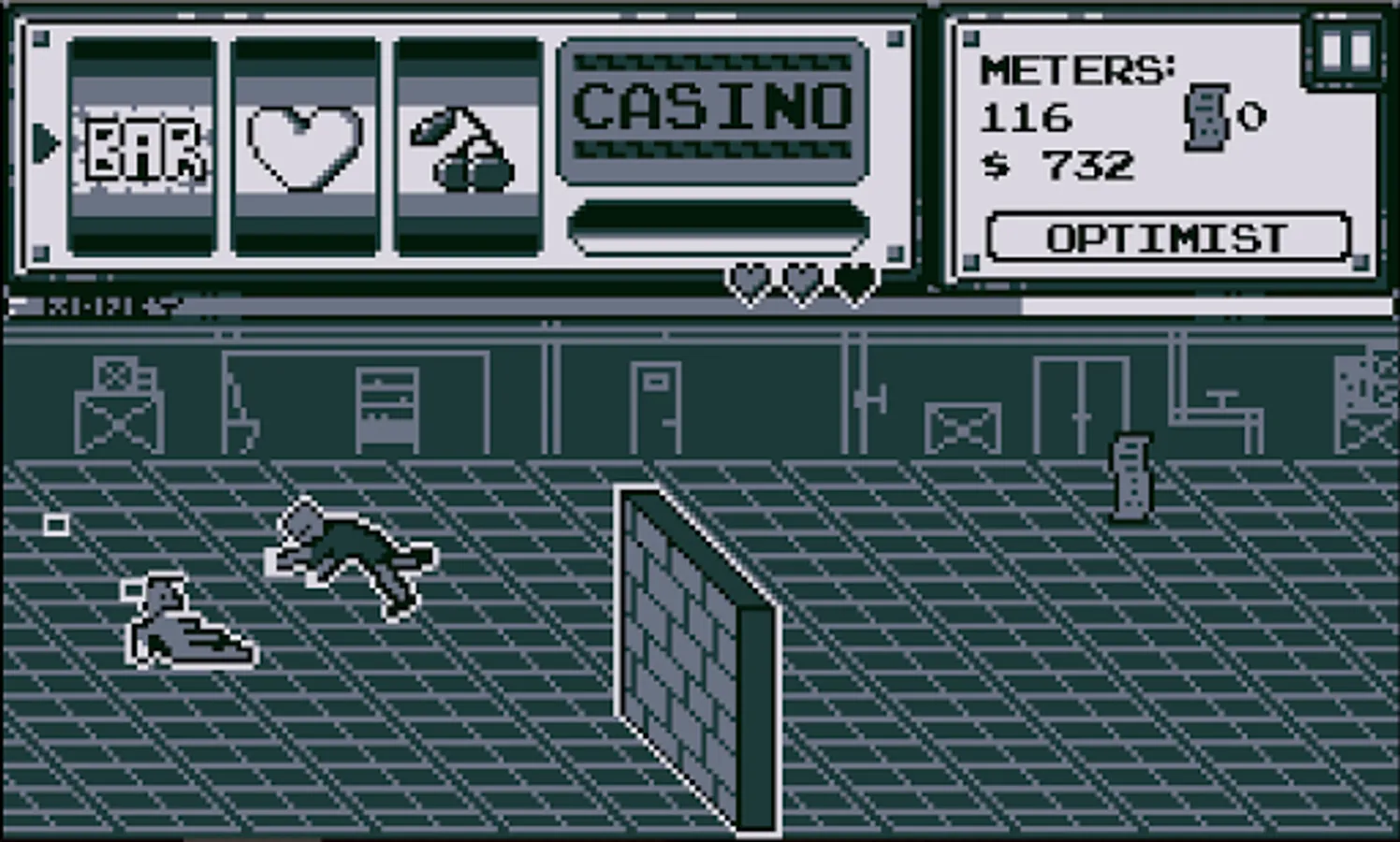Casino Heist first began as a submission to the GameboyJam5. Its retro look, sound and feel will take you back to the nostalgic days of late 80's consoles.