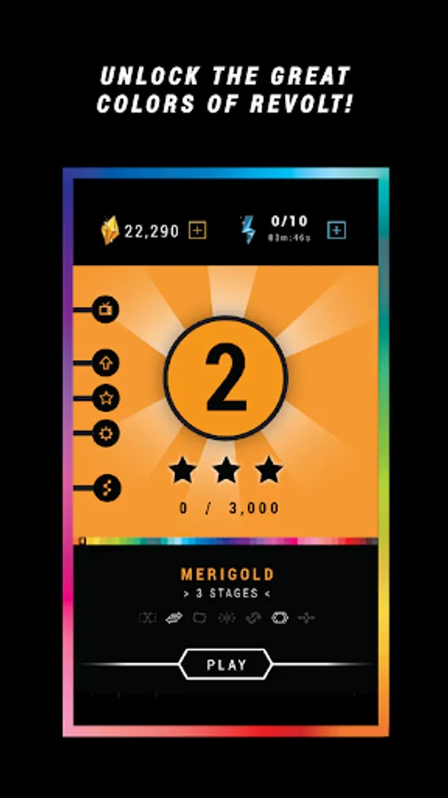 - Color-themed stages designed on a prismatic palette that unravels as the game progresses