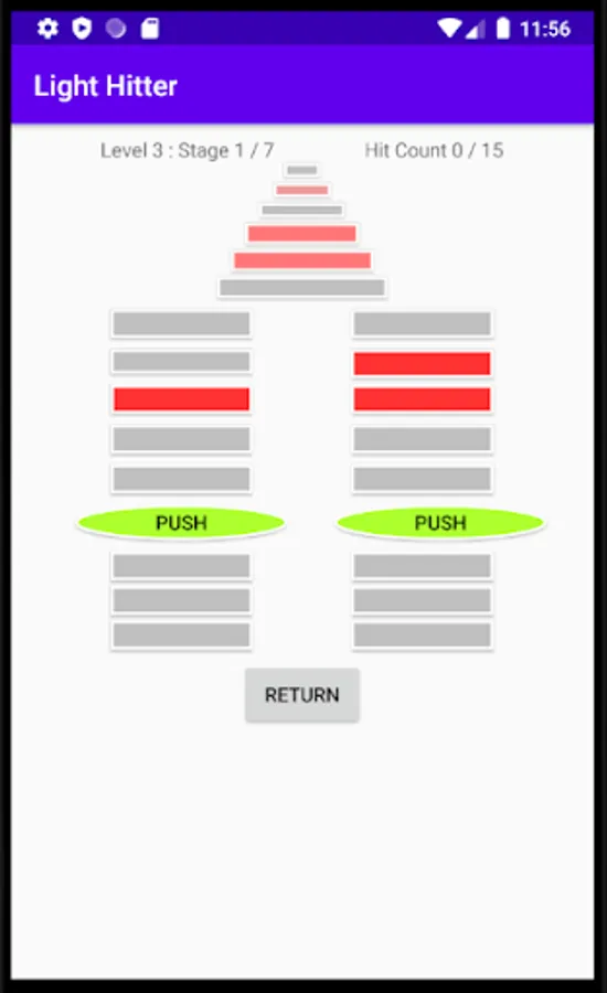 When missed to hit lights, accumulate "missed". When "missed" become 4, game is over.