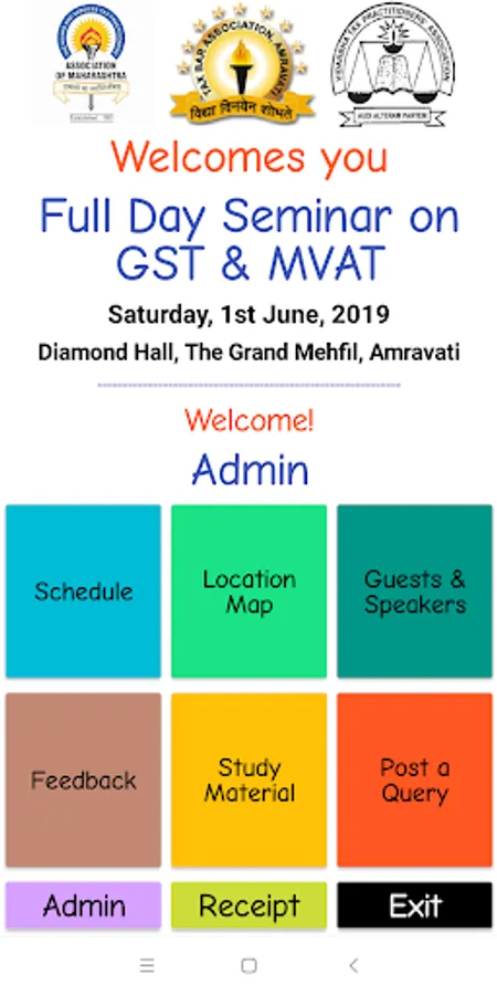 This is an App for Seminar on GST to be held on 1st June 2019 at Hotel Grand Mehfil, Amravati. This Seminar is organised jointly by TBA Amravati, VTPA Nagpur and GSTPAM Mumbai. This App gives information about Seminar, Speakers, Guests and enables registration for delegates.
