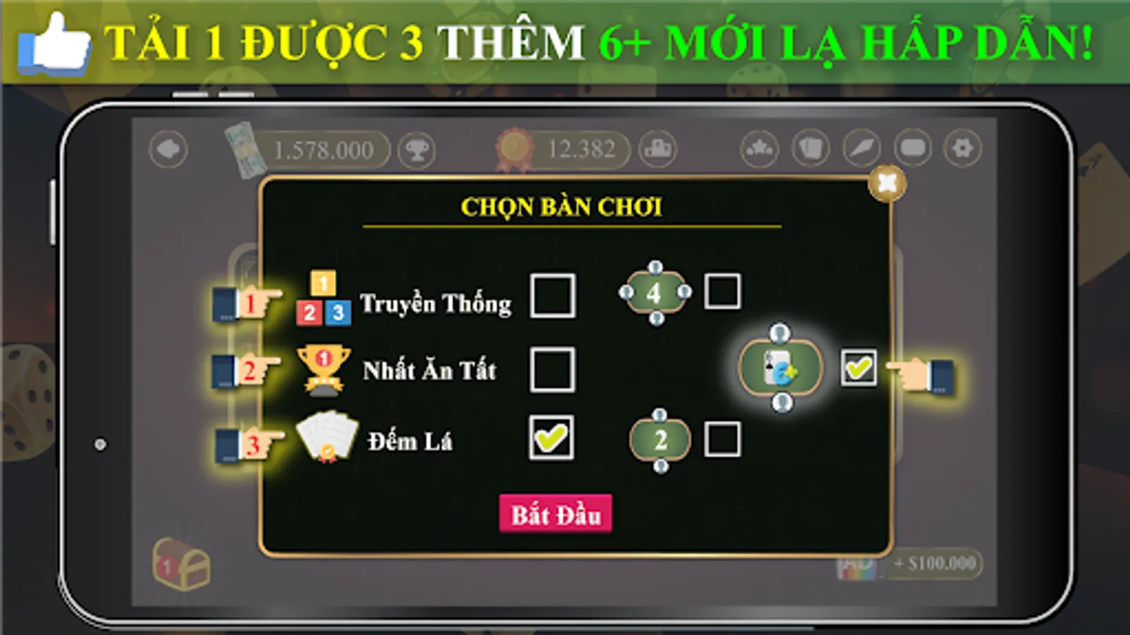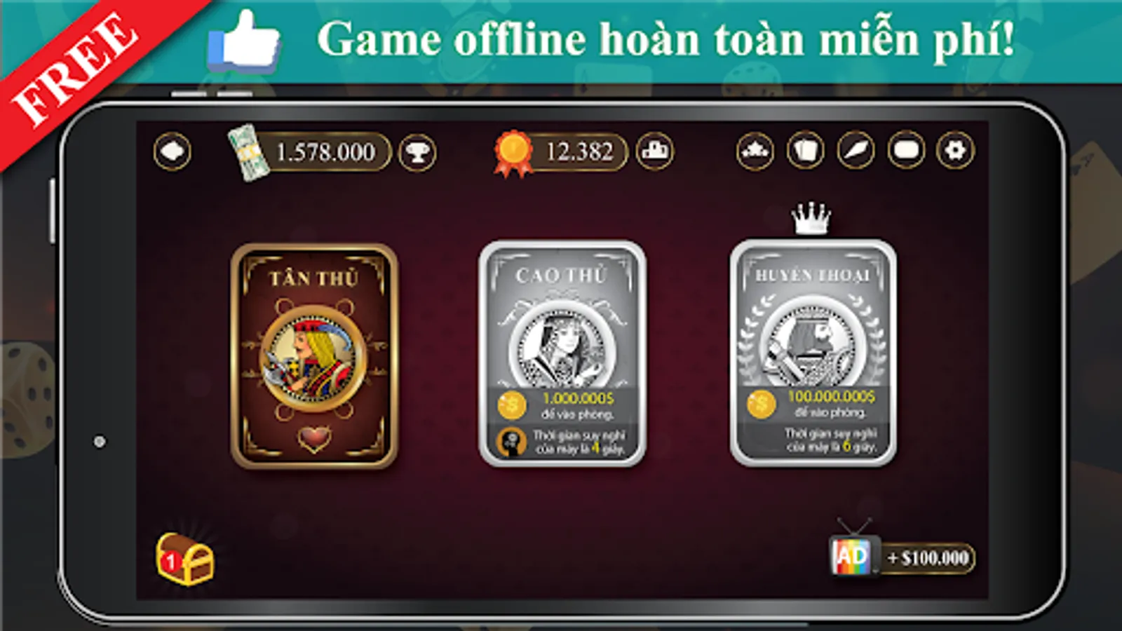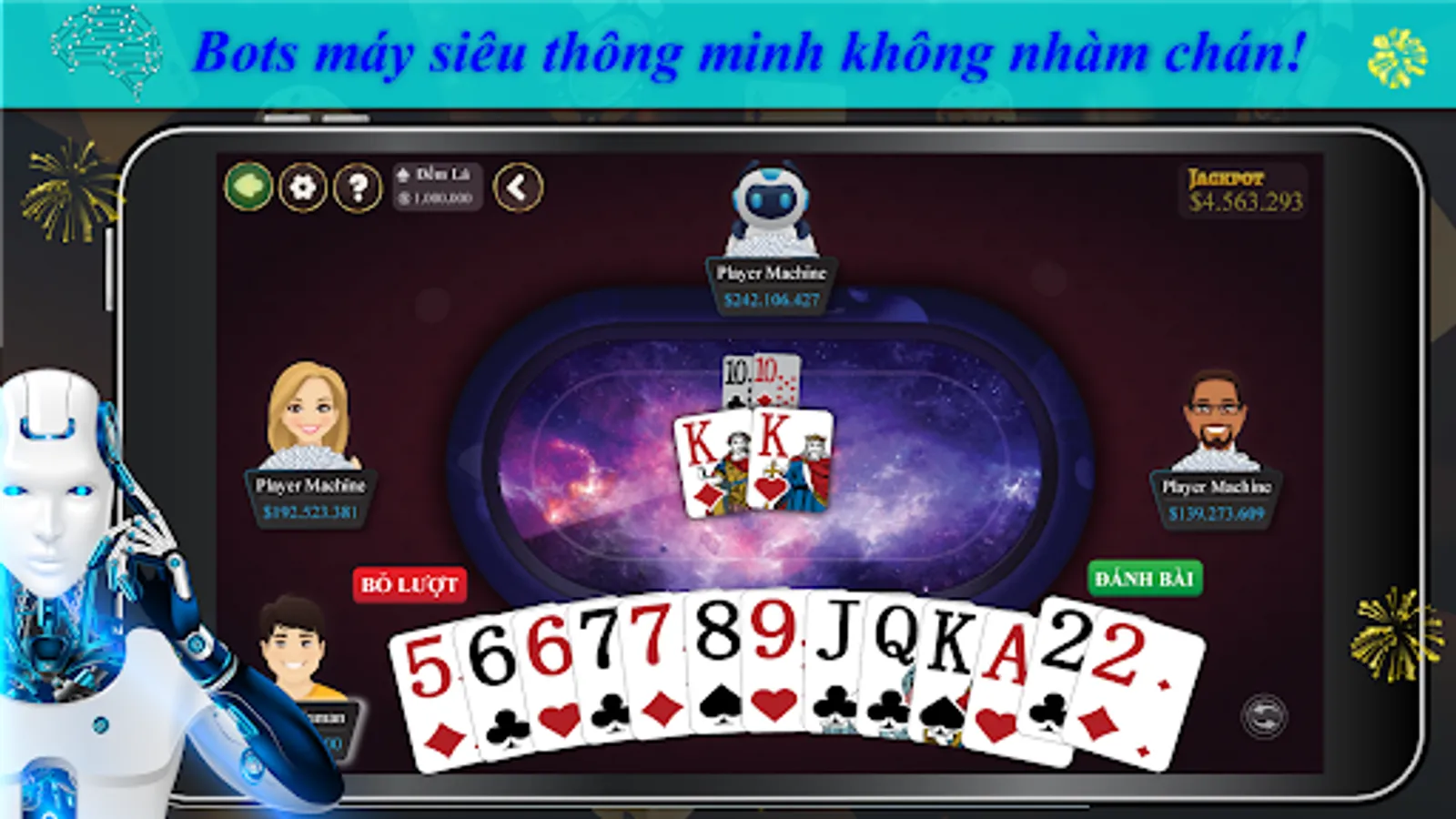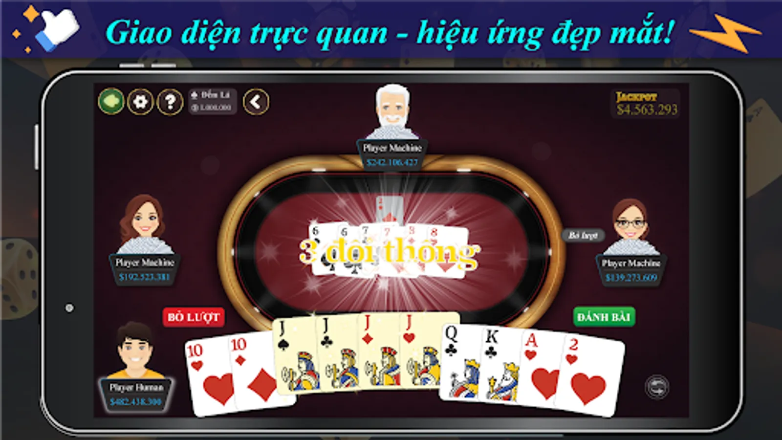 You just need to turn on the machine and play with virtual opponents programmed to play the best you can, this is a card game to improve the player's Tien Len South skills to become a true master!