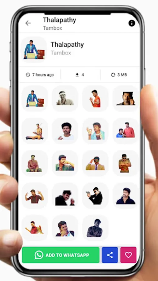This Thalapathy Vijay stickers app has a variety of Vijay stickers such as cute, stylish, angry, sad, expressions of the actor Thalapathy Vijay. You can send the stickers to any of your friends privately or in group chats easily by adding the stickers to WhatsApp.