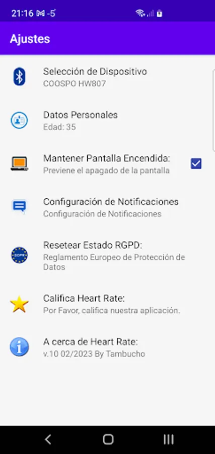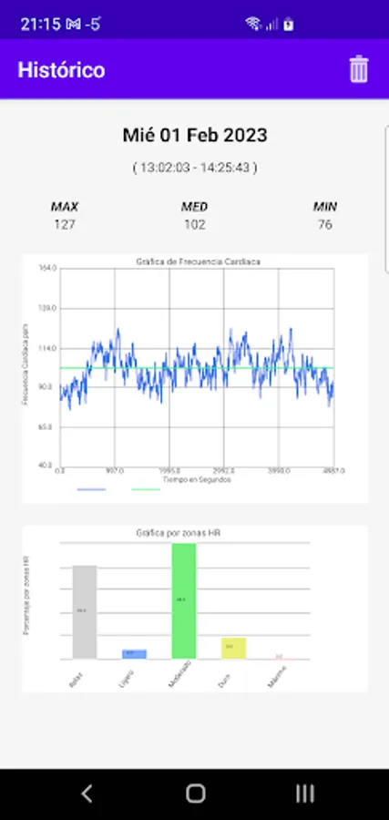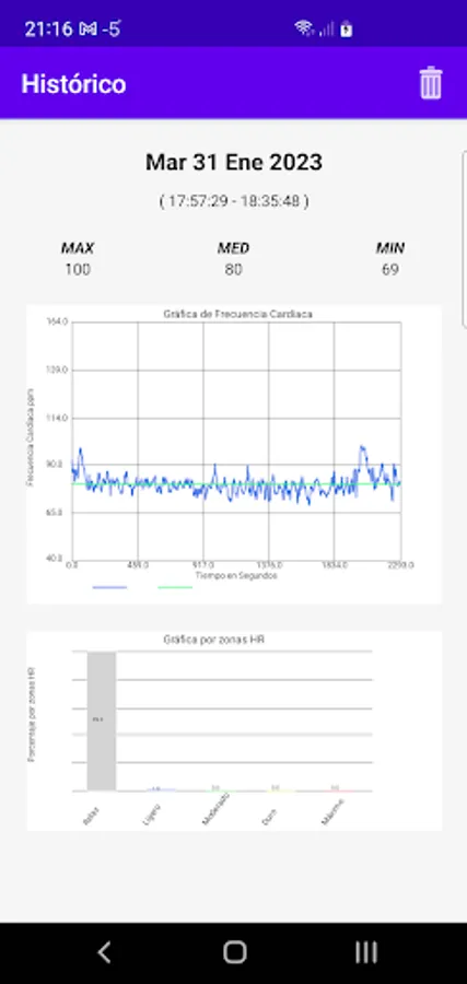 Heart rate monitor to use together with bracelets or chest belts via bluetooth, Shows the heart rate and records the sessions, even with the application closed. It offers graphs of both heart rate and percentages by hr zones.