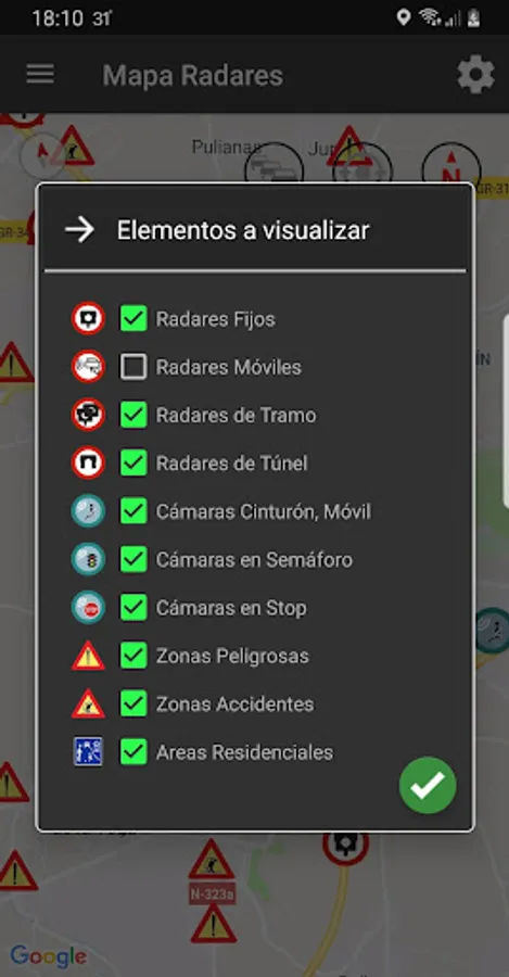 With InfoRadars forget the fines for speeding and travel quietly. You will receive announcements by voice, even with the mobile screen off or the application in the background of: