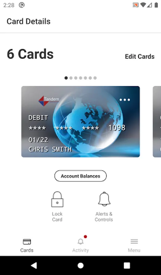 Alerts for PIN and signature transactions can be set up to keep you informed of your card usage and help you quickly detect unauthorized or fraudulent activity. This app can send an alert when a card is used or when a card transaction has been attempted but is declined – and additional customizable alert options are available. Alerts are sent in real time, immediately after a transaction has taken place.