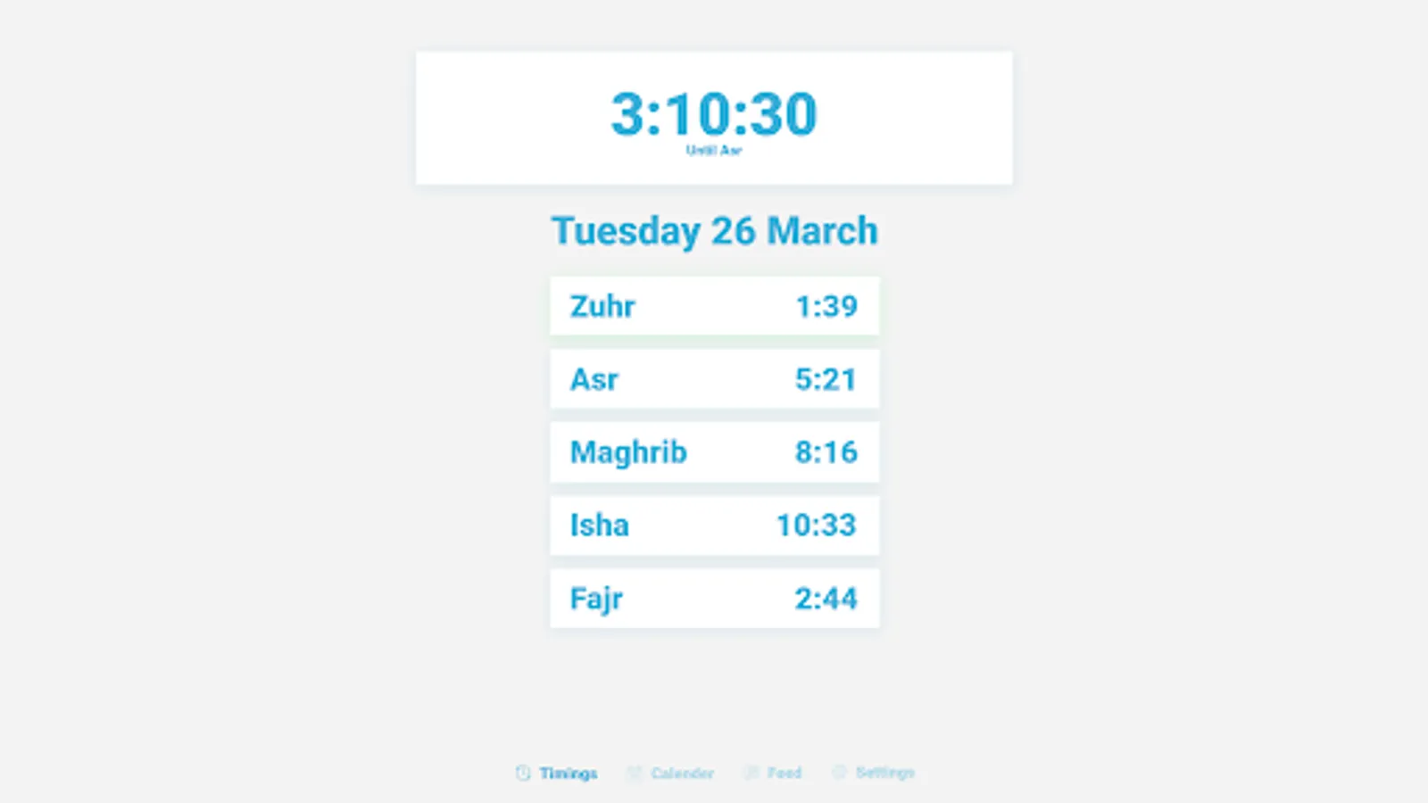 Find prayer times for almost any location + any date in the world! whilst looking at a modern app design.