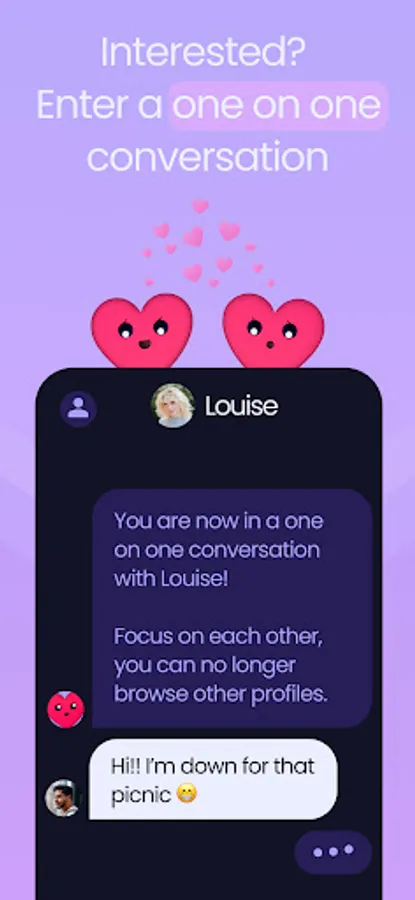 If you click, you can choose to start a one on one conversation. Neither of you will be able to keep browsing profiles or to have simultaneous conversations, so focus on each other!