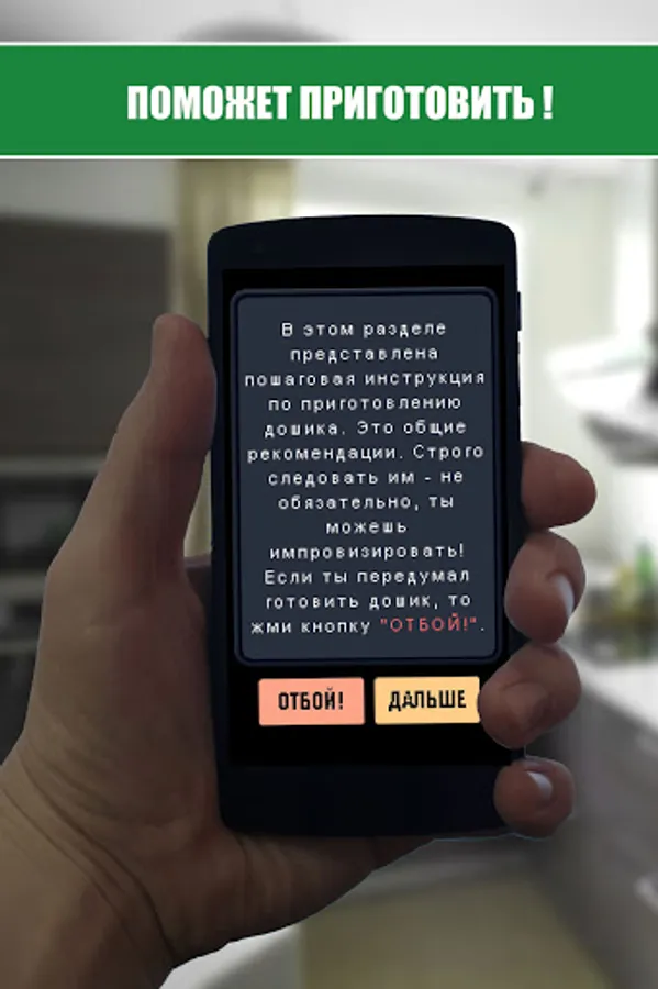 This application will make your life easier! More choice of Doshik will not burden you, the application will do it for you! And while he prepares - he will entertain!