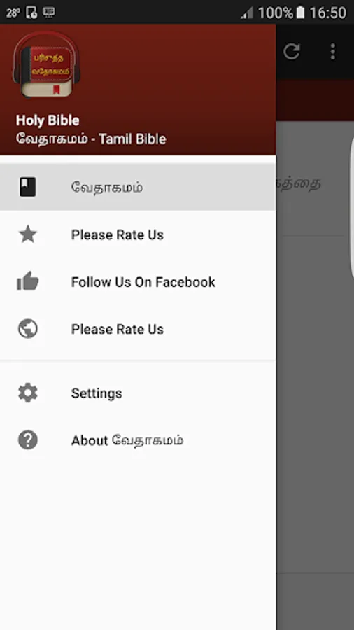 தமிழ் பைபிள் - Tamil Bible audio. we are glad to release android Tamil Bible app as a free service, to spread Jesus words. Start your day with Tamil of the bible. Tamil bible audio app is not just another Tamil bible Study app (Tamil Language). Its for Tamil people. Our aim is to keep you inspired and nourished everyday with god words. This android application comes complete with text and audio Bible in Tamil, New and Old testaments. You can read and listen the word of God at the same time. User interface is designed for easy navigation capabilities. Very easy access to all Chapters of Holy Bible in Tamil. We sincerely hope that this app will rejoice you. Listen to the Divine and Holy Bible Daily and get closer to God day by day 🙂