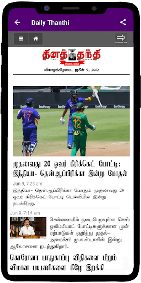 1. The Tamil News content displayed are collected directly from the newspaper website.