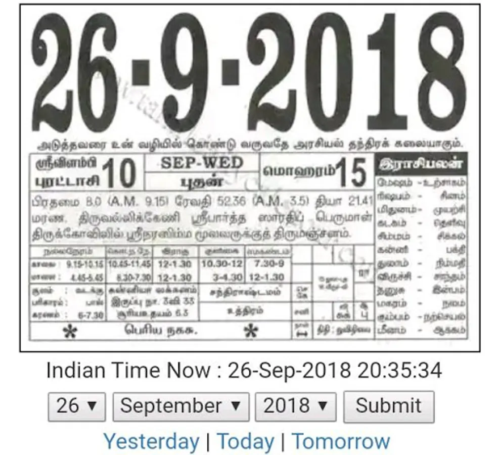 Tamil Calendar 2019- நாள்காட்டி is present. this shows Nalla neram today, Subha Mugurtham, Panjangam - பஞ்சாங்கம் in Tamil.
