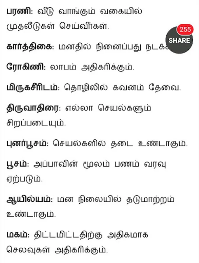 Mesha Rasi Palan, Rishaba Rasi Palan, Midhuna Rasi Palan, Kadaga Rasi Palan, Simha Rasi Palan, Kanni Rasi Palan, Thulam Rasi Palan, Viruchaga Rasi Palan , Dhanusu Rasi Palan, Magara Rasi Palan, Kumba Rasi Palan, Meena Rasi Palan.