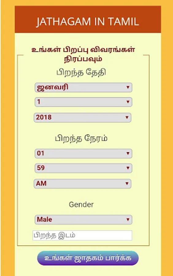 Thirumana Porutham is very important for couples to lead their lives happily for years together. Nachathira Porutham, Peyar Porutham and porutham by date of birth is given. Kili Josiyam, Kai Regai Josiyam , Jathaga Kannipu are the different types of Tamil Astrology. All these features are available in this single app. Thinapalan means palan for eveyday to paln the work accordingly. Apart from all these Nachathira Palan for all the 27 Nachathiram is available.