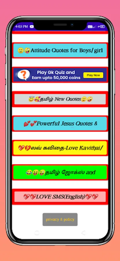 * Many more categories of pick up lines for girls & quotes for lover, old friends, boy friend, wife, husband, guys family, him & her etc.