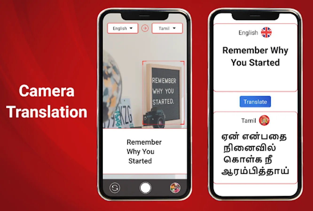 Instant Live translation using OCR technology. Bring any text behind camera and our Tamil voice keyboard app will translate the text in your desired language.
