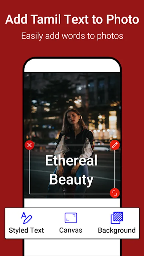 Write Tamil text on photo using Photo Editor Feature. Take Photo or select any image from gallery to write Tamil text on it that gives your photo a new look. Share and Post it anywhere you want.