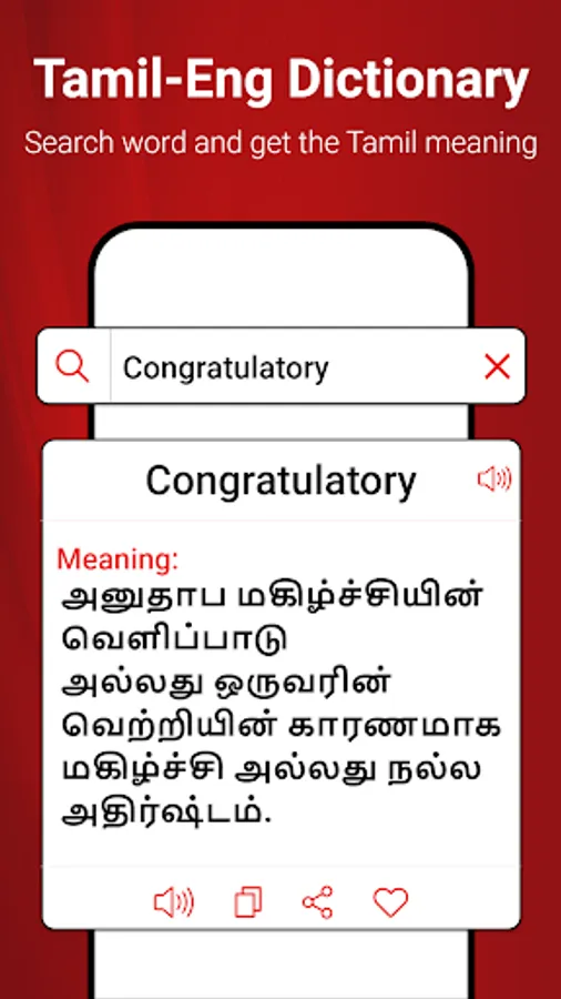 Search meaning of Words in Tamil or English using Tamil dictionary. A list full of words is also present in thesaurus module so you can increase your Tamil vocabulary. Mark you words and their meanings as favorite.