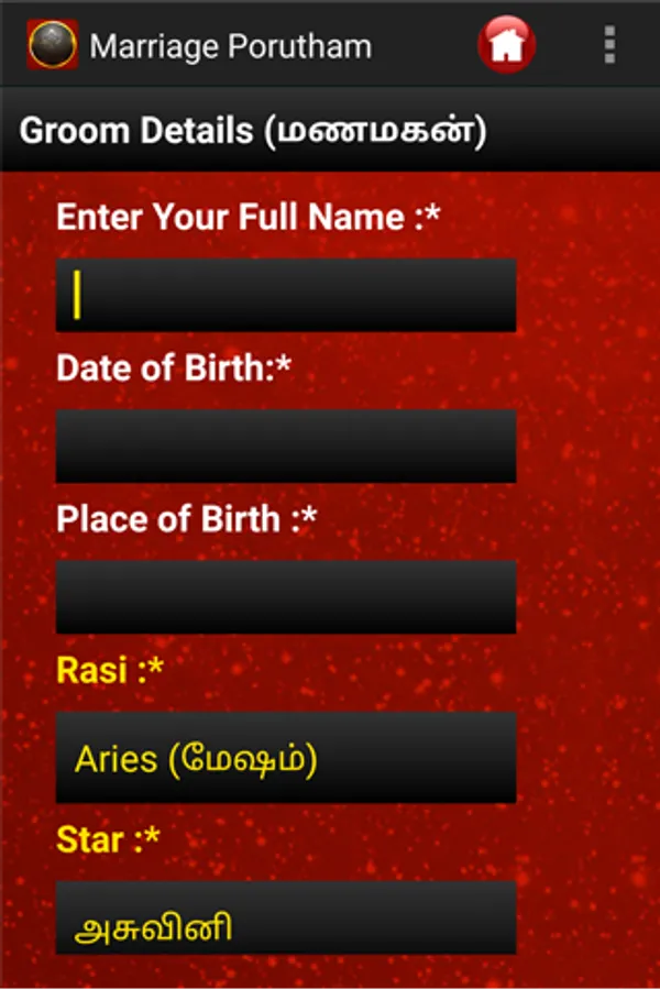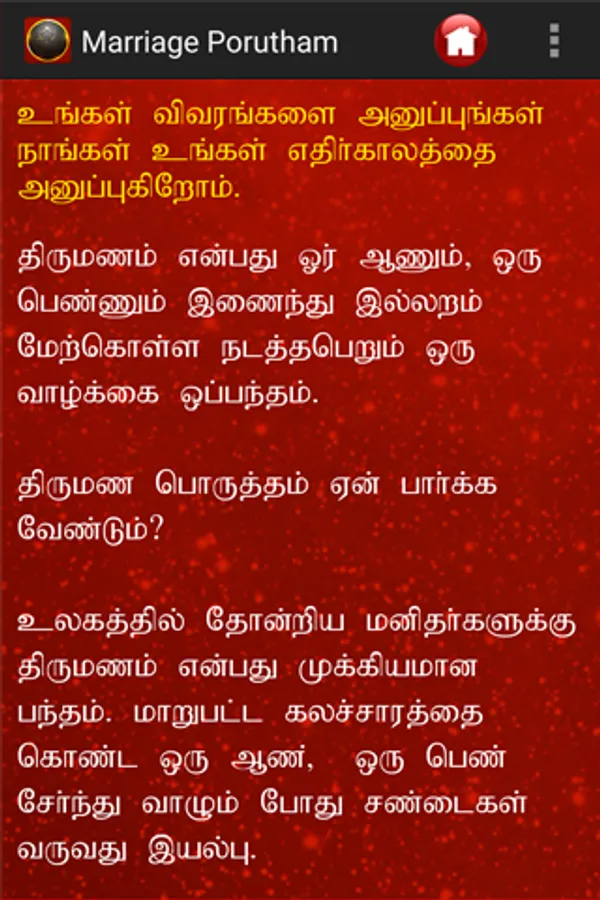 Marriage Porutham : Just send groom and bride details,We will send Marriage Porutham details.