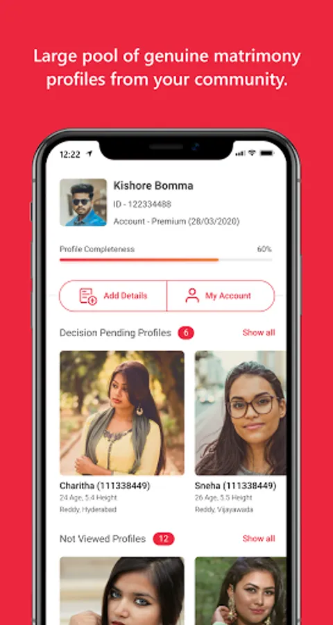 Our smart and light matrimony app with customized features helps to narrow your search for profiles.