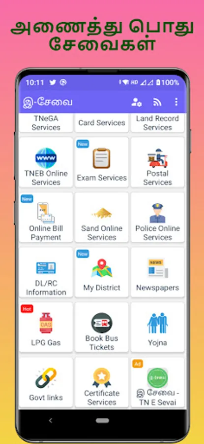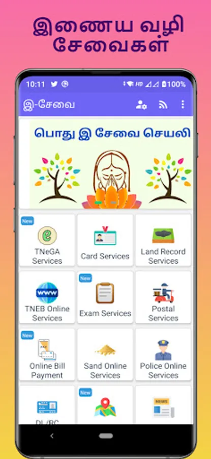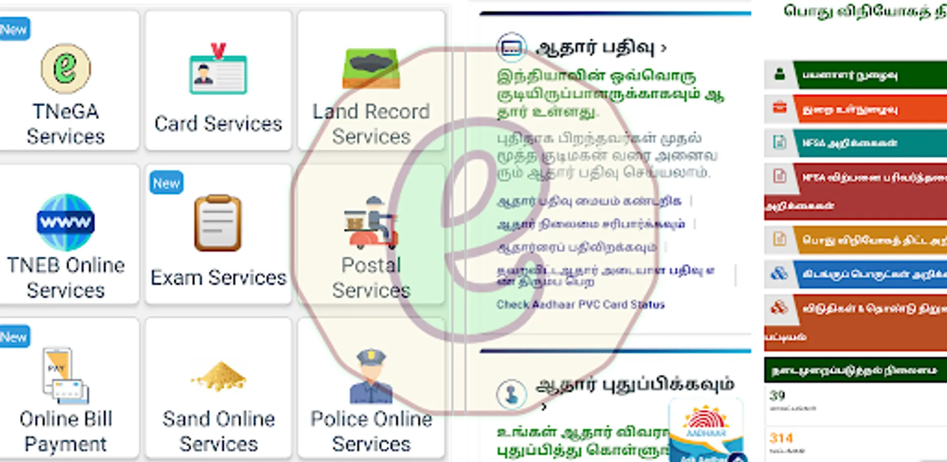 E-Sevai All Online eServices Tamil App (இ சேவை ஆன்லைன் இ சர்வீசஸ் தமிழ்)- ID Card's, Land Records, TNeGA, Aadhar Card Voter Card, Pan Card, Ration Card, TNEB and More Service's.