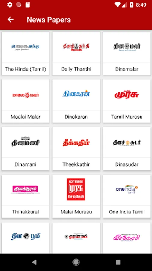 The Hindu (Tamil), Daily Thanthi, Dinamalar, Maalai Malar, Dinakaran, Tamil Murasu, Dinamani, Theekkathir, Dinasudar, Thinakkural, Malai Murasu, One India Tamil, Thinaboomi, Murasoli, Virakesari, Uthayan, Nakkeeran, Webdunia, Cineulagam, Goodreturns Tamil and more