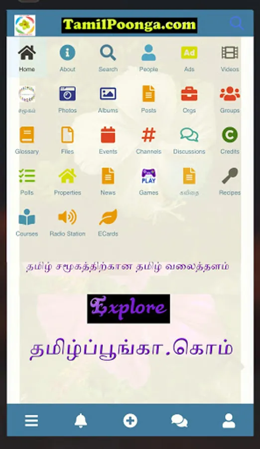 TamilPoonga.com -Tamil Community social network for Tamil people. Free to join, upload and share your interests and meet others. Chat with your family and friends in free messenger with group or one on one. Explore & post your interests with listen live radios, Videos, photos, news, articles, cooking recipe, temples, write poems, play game, List your business, real-estate, buy-sell & much more - all in one place.