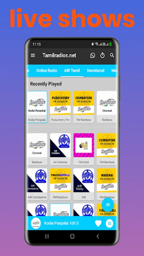 Install the Tamil radio app on your android, find out hundreds of fm radio channels, and listen to whatever you like!
