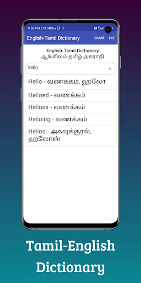 Free English-Tamil, Tamil-English translator and Dictionary App.