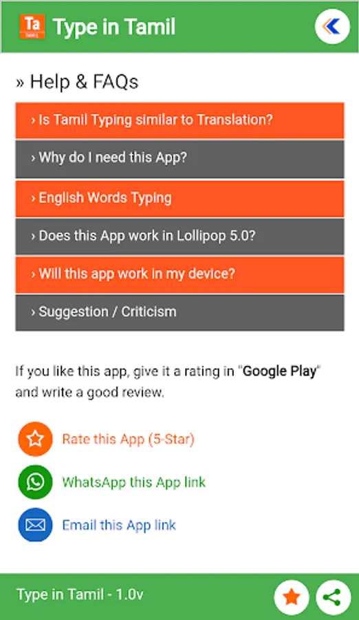 * Simply type Tamil words in English