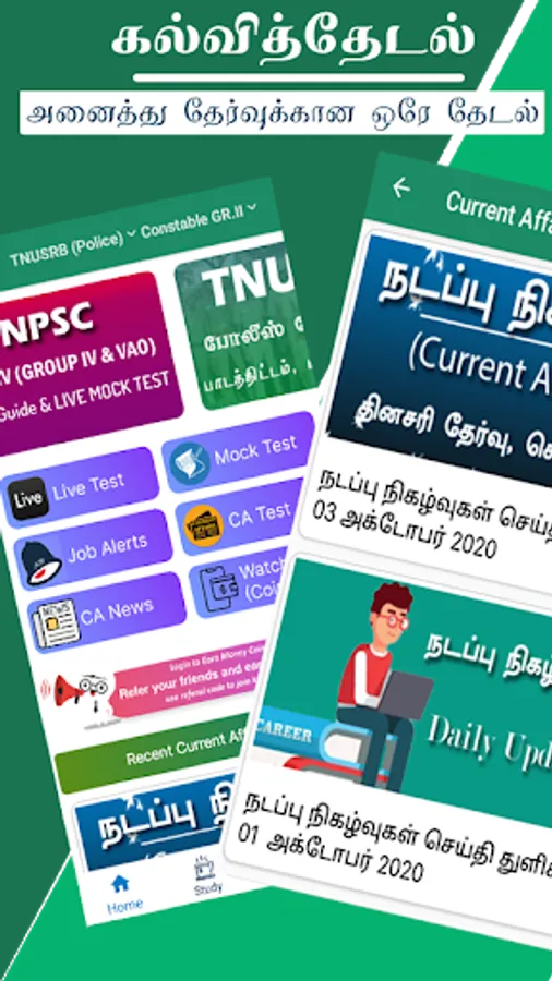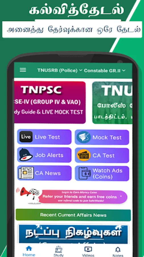 Updates: TNUSRB (Police Constable), TNPSC Group I, IV Exam, study materials added.