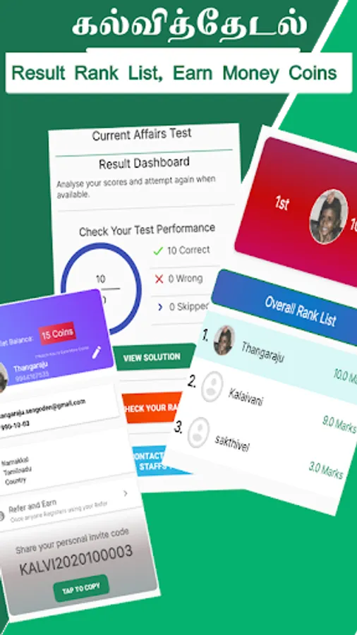 After finished Live, Mock Test user can check their cut off mark with kalvithedal exam dashboard and check leader board for state level rank analysis.