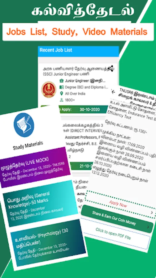 Kalvithedal app is a job information based platform along with Online test, study materials with a collection of both private jobs across Tamilnadu and government jobs (above-mentioned sources) across India. We are just a platform providing job information and we do not represent any of the government entities.