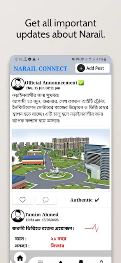 Stay connected and engaged with your community through Narail Connect's robust social platform. Share updates, thoughts, and experiences with fellow residents, fostering a sense of unity and belonging. From organizing local events to discussing important topics, Narail Connect keeps you connected to the vibrant social fabric of Narail Zila.