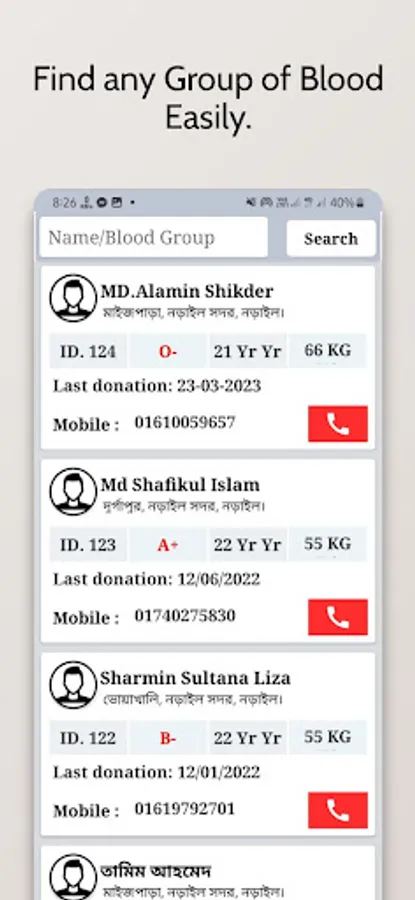 Finding blood donors during emergencies is made easier with Narail Connect's comprehensive blood donation feature. Access a database of potential donors who match your specific blood type requirements. Connect with willing donors within the Narail Zila community, ensuring prompt assistance during critical situations that require blood transfusions.