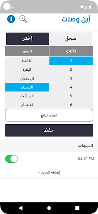 It is a program that was specially designed to facilitate the process of reading and writing down the place you reached in the Qur’an