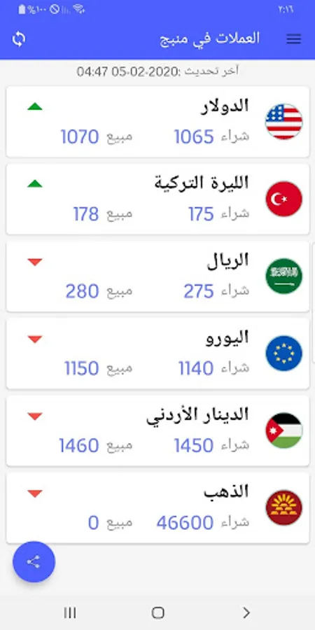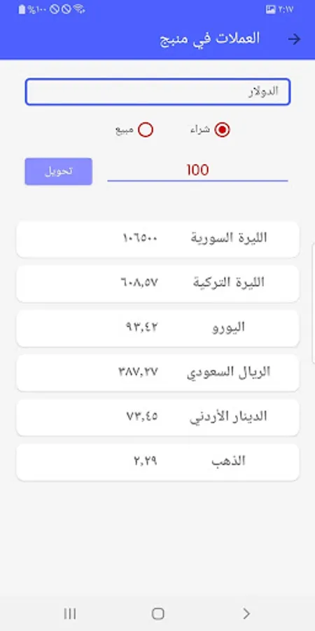 Currency application provides you with the exchange rates of the dollar, the euro, the Saudi riyal, the Turkish lira and gold against the Syrian pound and the conversion between them in relation to exchange rates