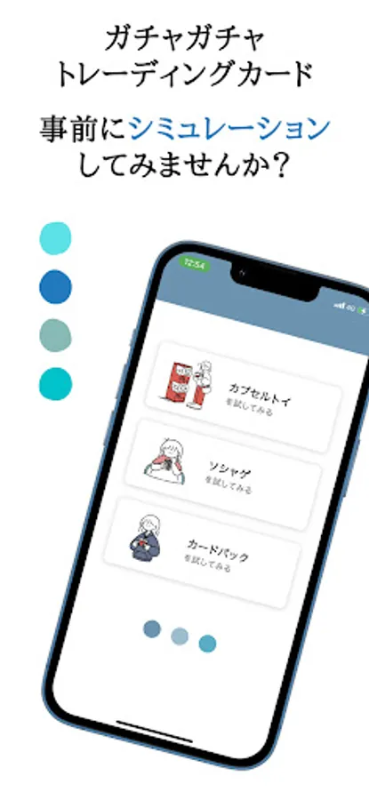 This app is an app that allows you to perform a preliminary simulation before playing "Gacha Gacha", "Soshage Gacha", and "Trading Cards"!