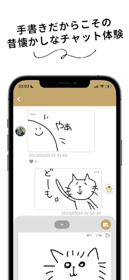 This app chats through hand-drawn illustrations. Unlike LINE, you can't use text to communicate, and you basically communicate by drawing pictures.