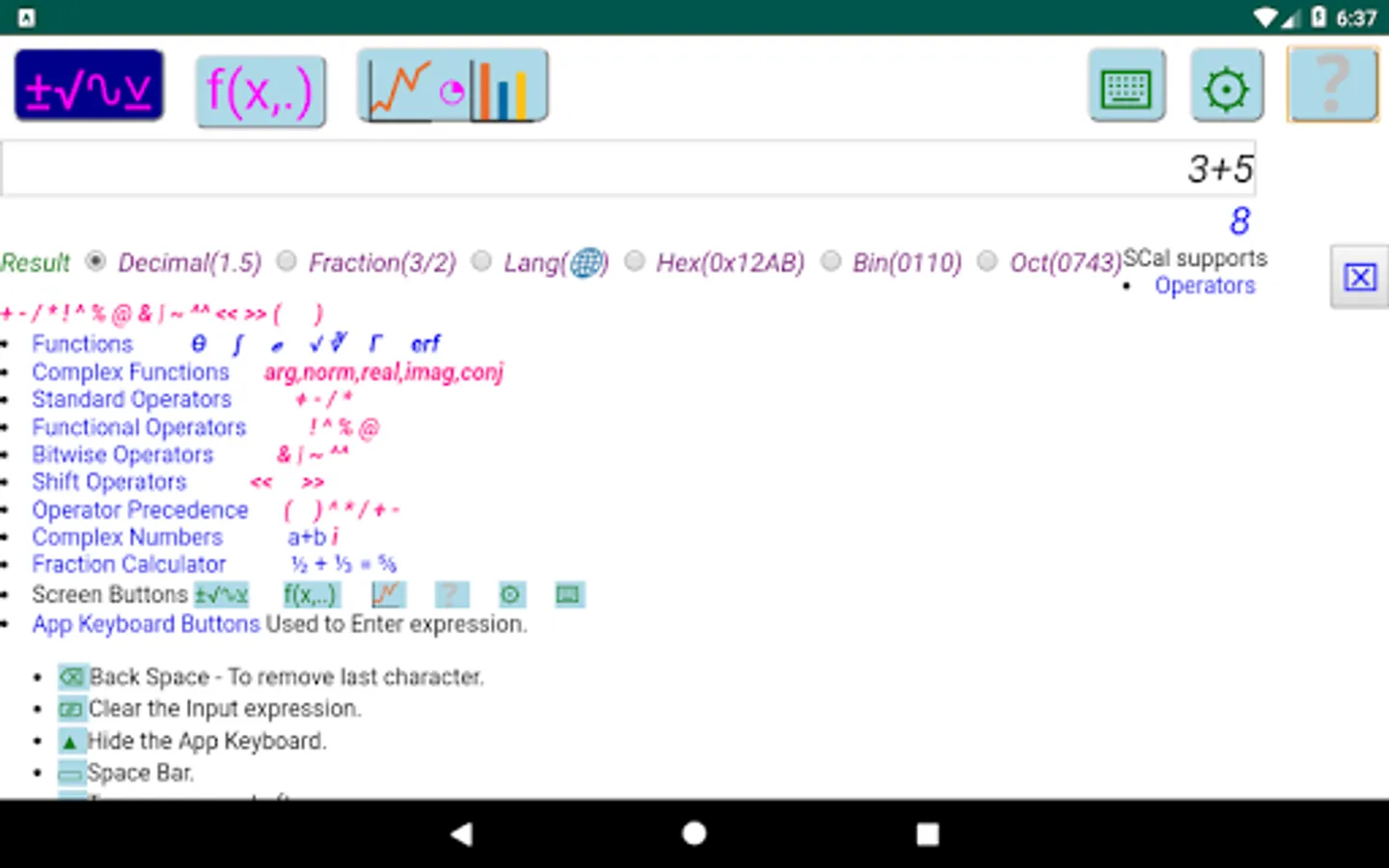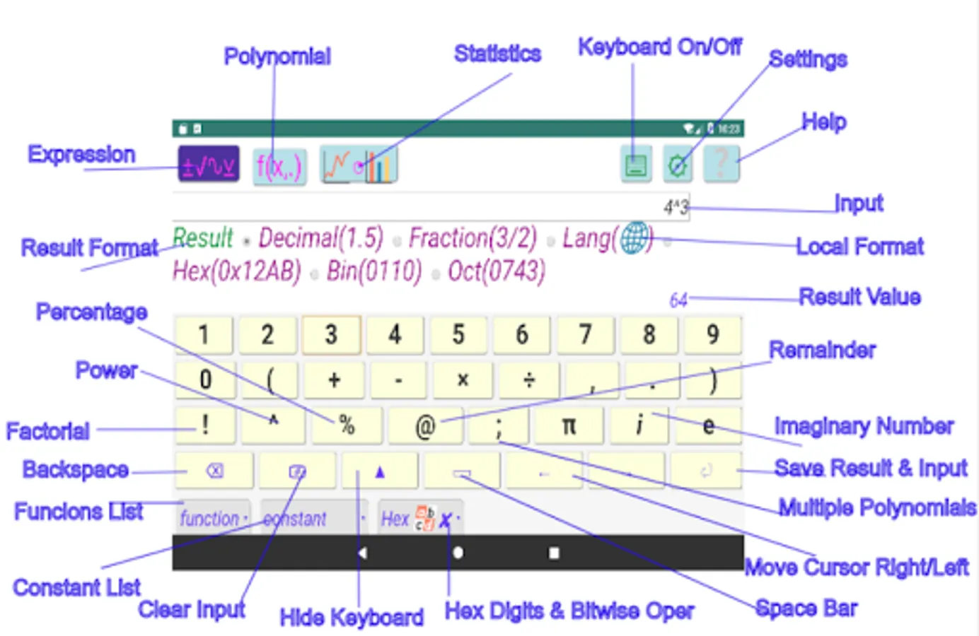 User can use their own keyboard or Built In App Keyboard to enter expression, Use settings to use user keyboard.