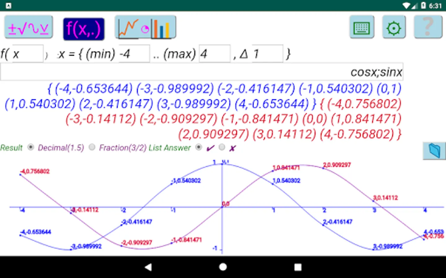 Trigonometric Functions sin, cos, tan, asin, acos, atan