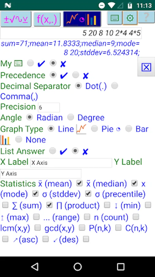 In Statistical Mode input data can be list of numbers separated by space, semicolon or comma.