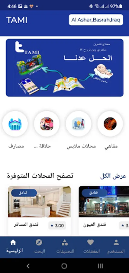 An electronic marketing platform that helps you to reach all the markets, including shops, companies, malls, restaurants and services in your area and within seconds through your mobile and from anywhere