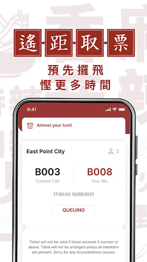Check queuing status of your nearby stores and get queuing ticket from App in advance to shorten waiting time.