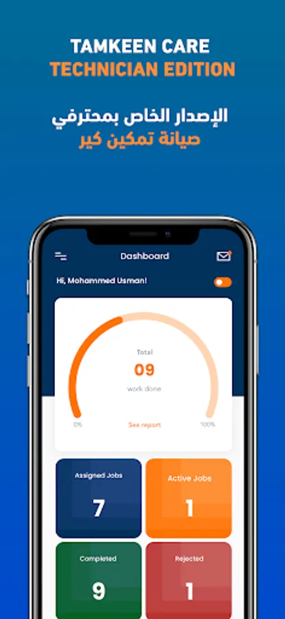 Tamkeen Care Technician app design for the internal use of Tamkeen in-house team for review the job details that mark by his supervisors.