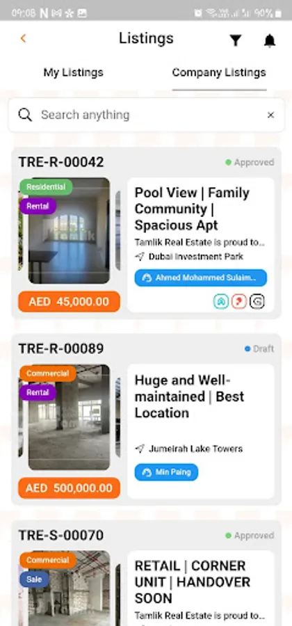 CRM Mobile Application to manage listings, leads, contacts, viewings and tasks on the go for Tamlik Real Estate