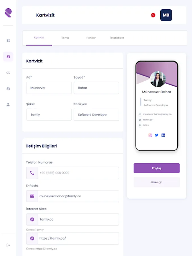 With Tamly's unique designs and user-friendly interface, you can easily update your business card so you don't have to print business cards over and over. With the Tamly directory feature, you can easily manage your network that you have created for business.