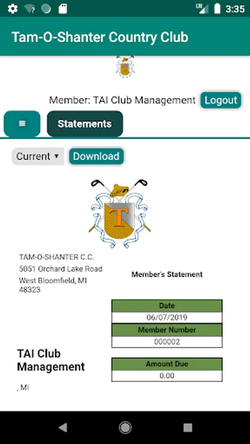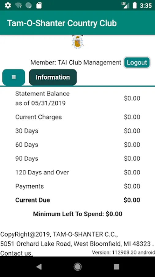Tam-O-Shanter members are able to review information and make tee time reservations