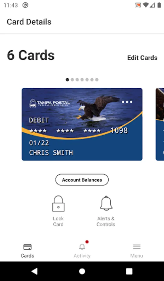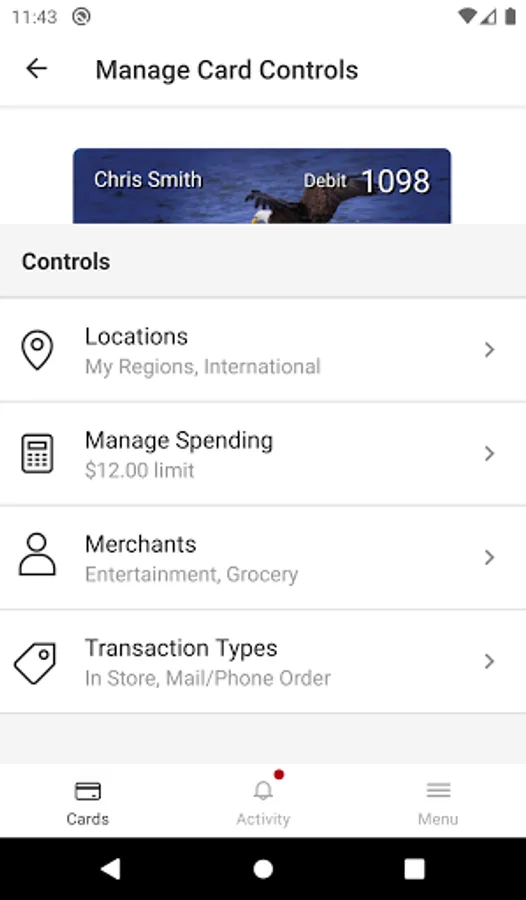 Protect your debit and credit cards by sending you transaction alerts and giving you the ability to define when, where and how your cards are used. Simply download the app to your smartphone, then customize your alert preferences and usage settings to monitor and manage your cards.