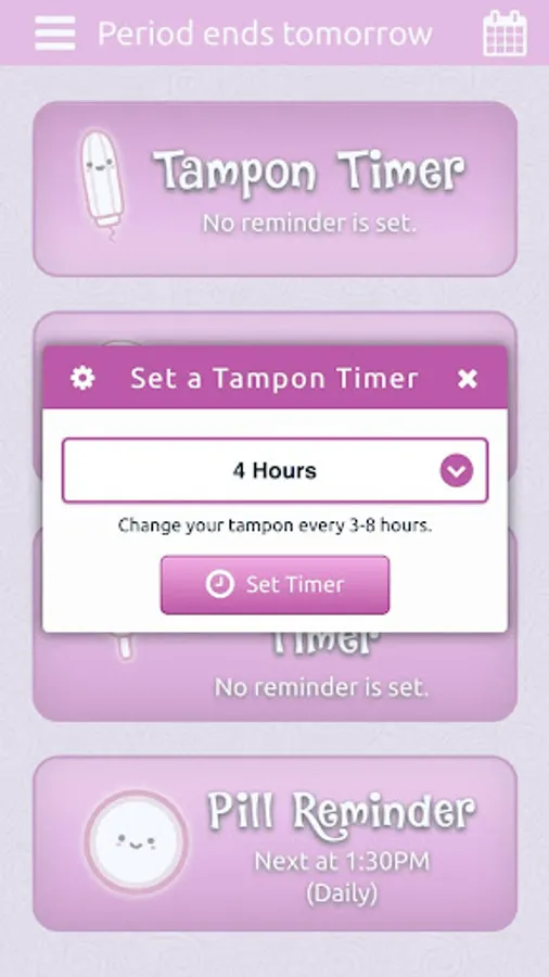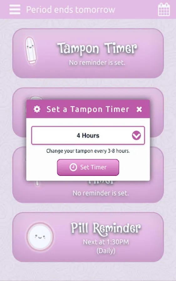 Tampon Timer is a simple alarm app to help women stay fresh and prevent prolonged use.